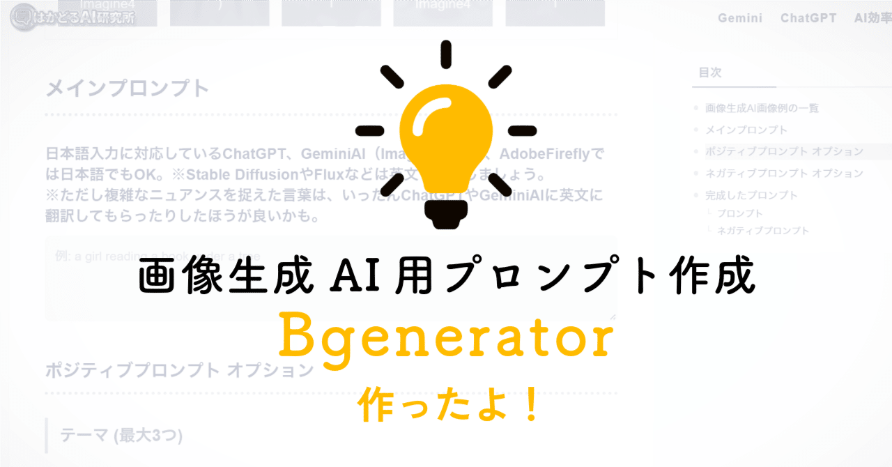 こんばんは! はかどるAI研究所の監修・運営者のやまぐちりさです。 先日、所員Bくんと一緒に、GeminiAIにお願いして、画像生成AI用のプロンプトジェネレータを作ってもら…